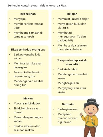 Berikut ini contoh aturan dalam keluarga Rizal.
