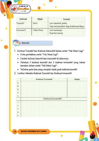 2. Latihan Menulis Kalimat Transitif dan Kalimat Intransitif