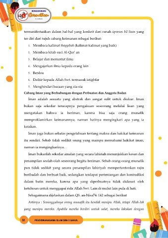ter diri dari tujuh cabang keimanan sebagai berikut: