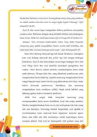 hamburkan (hartamu) secara boros. Sesungguhnya orang-orang yang pemboros