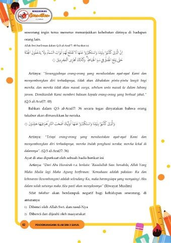 takabur akan dimasukkan ke neraka.