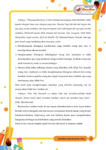 Artinya: ‚Danjanganlah kamu iri hati terhadap karuniayang telah dilebihkan Allah