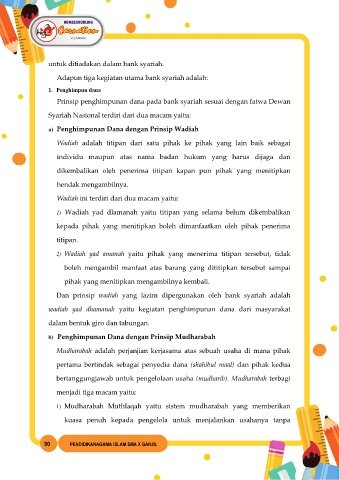 Adapun tiga kegiatan utama bank syariah adalah: