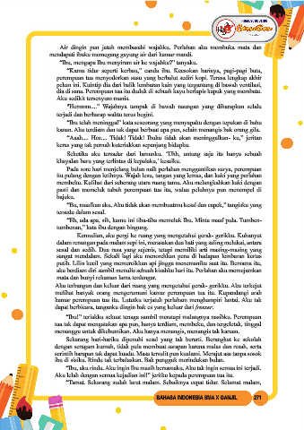 “Ibu, mengapa Ibu menyiram air ke wajahku?” tanyaku.