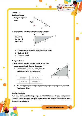b. Dua pasang nilai perbandingan trigonometri yang mana yang hasilnya sama?