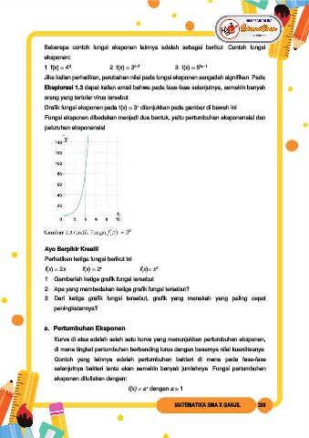 Beberapa contoh fungsi eksponen lainnya adalah sebagai berikut. Contoh fungsi