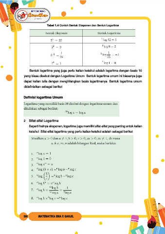 Tabel 1.4 Contoh Bentuk Eksponen dan Bentuk Logaritma