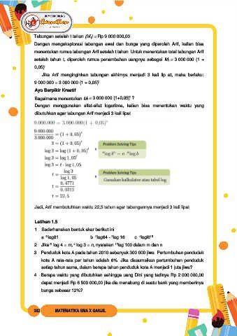 Jika Arif menginginkan tabungan akhirnya menjadi 3 kali lip at, maka berlaku: