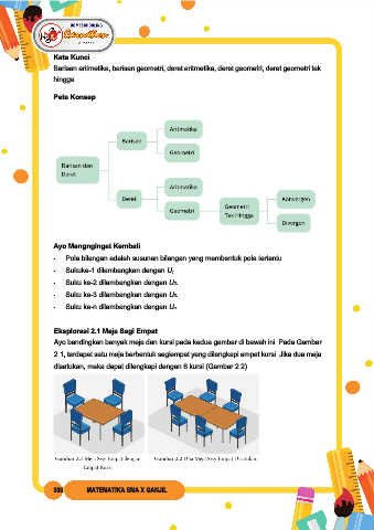 2.1, terdapat satu meja berbentuk segiempat yang dilengkapi empat kursi. Jika dua meja