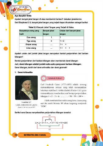 Apakah banyak jabat tangan di atas membentuk barisan? Jelaskan jawabanmu.