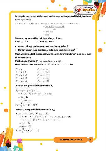 Dapat dibentuk deret aritmetika: U1 + U2 + U3 + U4 + … … … + U10
