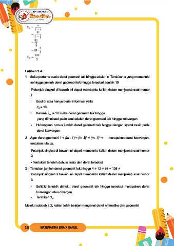 3. Tentukan jumlah deret geometri tak hingga 4 + 12 + 36 + 108 + ...