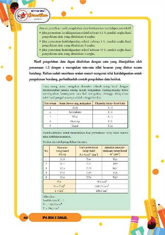 pengukuran berulang, perhatikanlah contoh pengolahan data berikut.