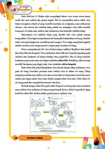 Pada Aktivitas 2.1 Kalian telah mempelajari bahwa virus secara umum hanya