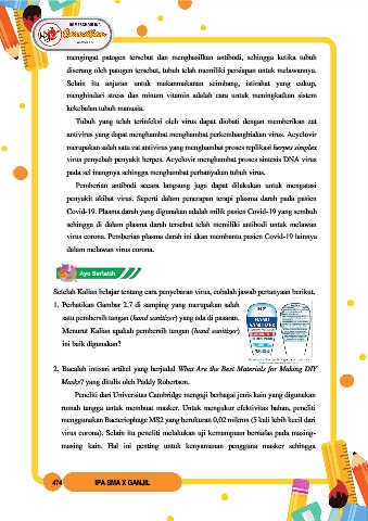 pada sel inangnya sehingga menghambat perbanyakan tubuh virus.