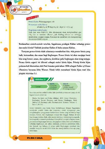 Proses kimia seperti ini dikenal sebagai reaksi kimia hijau. Prinsip kimia hijau