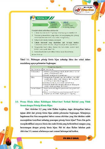 Tabel 3.1. Hubungan prinsip kimia hijau terhadap fakta dan solusi dalam