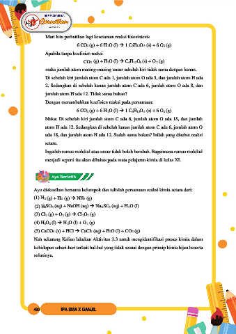 Ayo diskusikan bersama kelompok dan tulislah persamaan reaksi kimia setara dari: