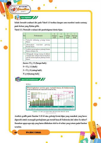 Tabel 3.3. Formulir evaluasi diri pembelajaran kimia hijau.
