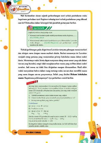 dan oksigen sama dengan massa merkuri oksida. Berkat temuannya ini Lavoisier