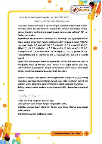 “Nabi saw. pernah membaca Al Qur’an yang di dalamnya terdapat ayat sajadah.