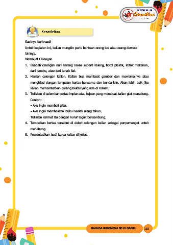 menghiasi dengan tempelan kertas berwarna dan benda lain. Akan lebih baik jika
