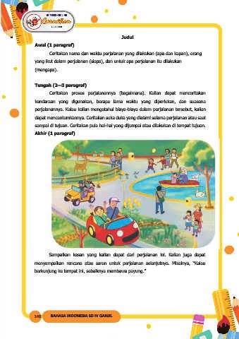 sampai di tujuan. Ceritakan pula hal-hal yang dijumpai atau dilakukan di tempat tujuan.