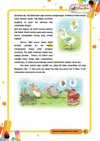 ditawarkan Hen. Ti Tikus perlu ubi, tetapi Hen tidak mau jamur dari Ti Tikus. Ti lalu