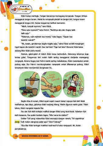 melihatnya. Apa daya, gatalnya tidak kunjung hilang. Makin digaruk makin gatal. Tidak