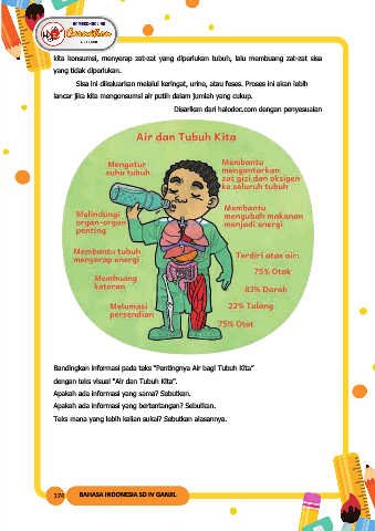 Bandingkan informasi pada teks “Pentingnya Air bagi Tubuh Kita”