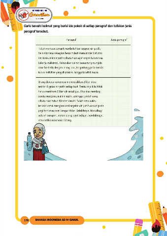 Garis bawahi kalimat yang berisi ide pokok di setiap paragraf dan tuliskan jenis paragraf tersebut. 176 BAHASA INDONESIA SD IV GANJIL