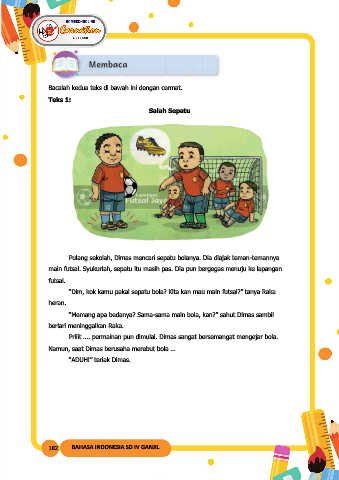 “Dim, kok kamu pakai sepatu bola? Kita kan mau main futsal?” tanya Raka