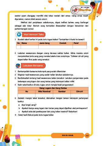 menyebutkan jenis uang yang mereka ketahui dan contohnya. Tuliskan ciri-ciri yang