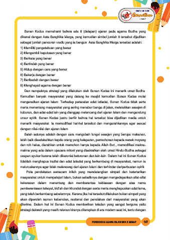 Sunan Kudus memahami bahwa ada 8 (delapan) ajaran pada agama Budha yang