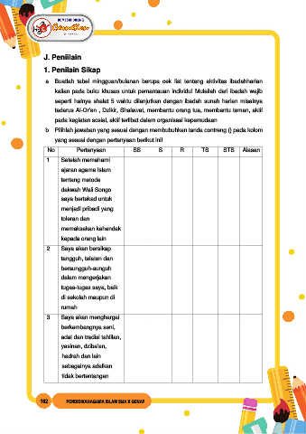 a. Buatlah tabel mingguan/bulanan berupa cek list tentang aktivitas ibadahharian