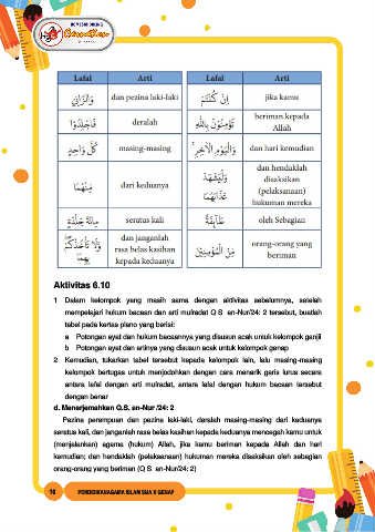 d. Menerjemahkan Q.S. an-Nur /24: 2
