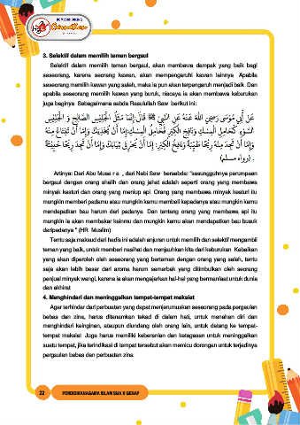 seseorang memilih kawan yang saleh, maka ia pun akan terpengaruh menjadi baik. Dan