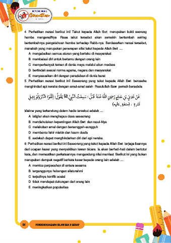 5. Perhatikan narasi berikut ini! Seseorang yang takut kepada Allah Swt. berusaha