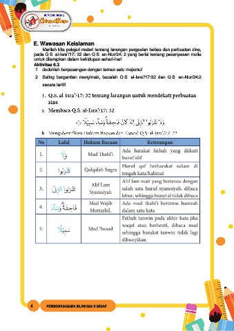 2. Saling bergantian menyimak, bacalah Q.S. al-Isra’/17:32 dan Q.S. an-Nur/24:2