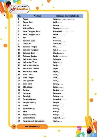 No. Provinsi Suku dan Masyarakat Adat