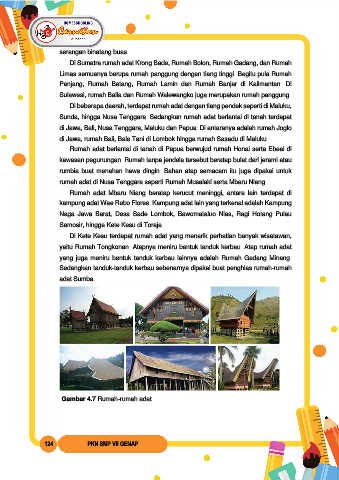 Di Sumatra rumah adat Krong Bade, Rumah Bolon, Rumah Gadang, dan Rumah