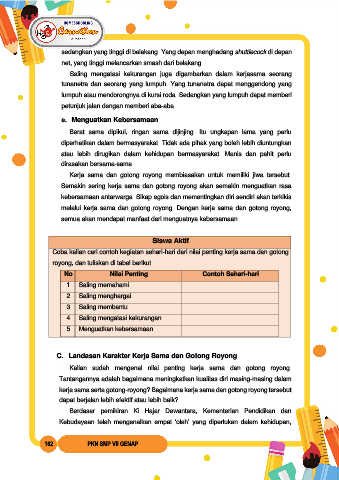 Coba kalian cari contoh kegiatan sehari-hari dari nilai penting kerja sama dan gotong